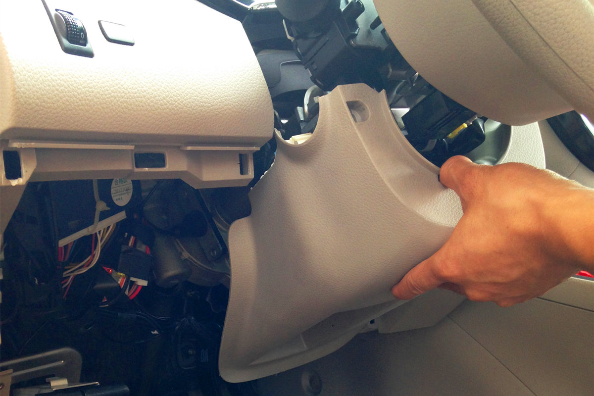 1、拆下方向盘下饰盖