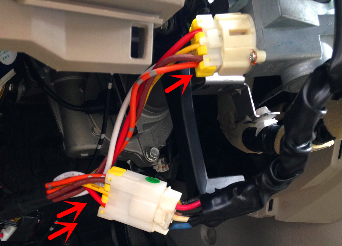 2、取下点火锁插头并插上启动线束