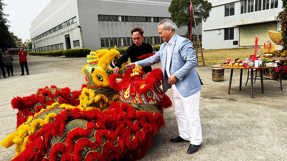 仪式现场,锣鼓喧天,醒狮欢腾,采地宝青、采高青,精彩表演将现场气氛推向高潮。传统与现代交融的表演,不仅展现了中华文化的博大精深,更寓意着广东珠江开关在新的一年里将如灵蛇般敏捷进取,势不可挡,在激烈的市场竞争中勇立潮头,再创佳绩。