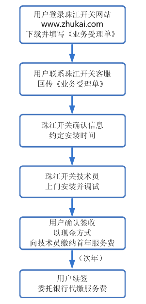 请按照下述流程进行报装,或者直接点击“我要报装”进行网上登记。